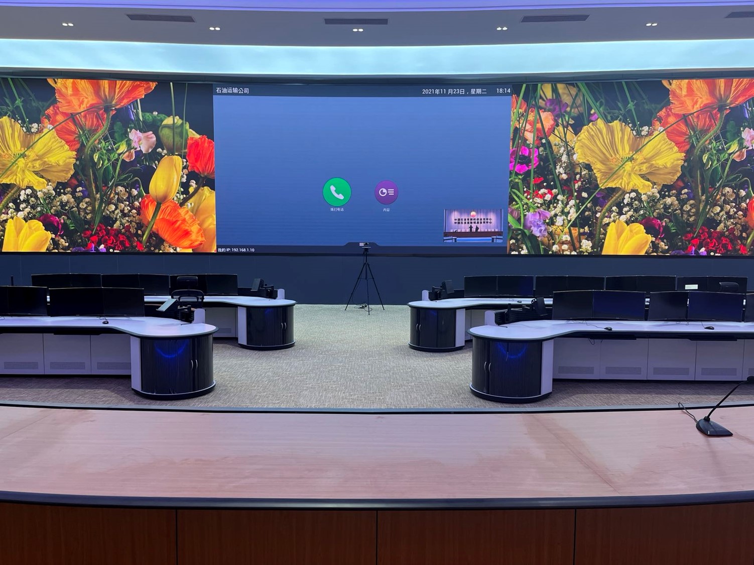 中國石油集團(tuán)安全環(huán)保技術(shù)研究院1層視頻會(huì)議室創(chuàng)新型的運(yùn)用0.93mmLED顯示屏,不僅滿足單位召開視頻會(huì)議室使用,同時(shí)可用于超高分圖像的展示工具,對研究院研發(fā)團(tuán)隊(duì)成果展示、實(shí)驗(yàn)過程分析提供保障。同時(shí)對現(xiàn)有視頻會(huì)議功能進(jìn)行升級,由原來模擬、標(biāo)清視頻會(huì)議形式升級為高清、4K會(huì)議,